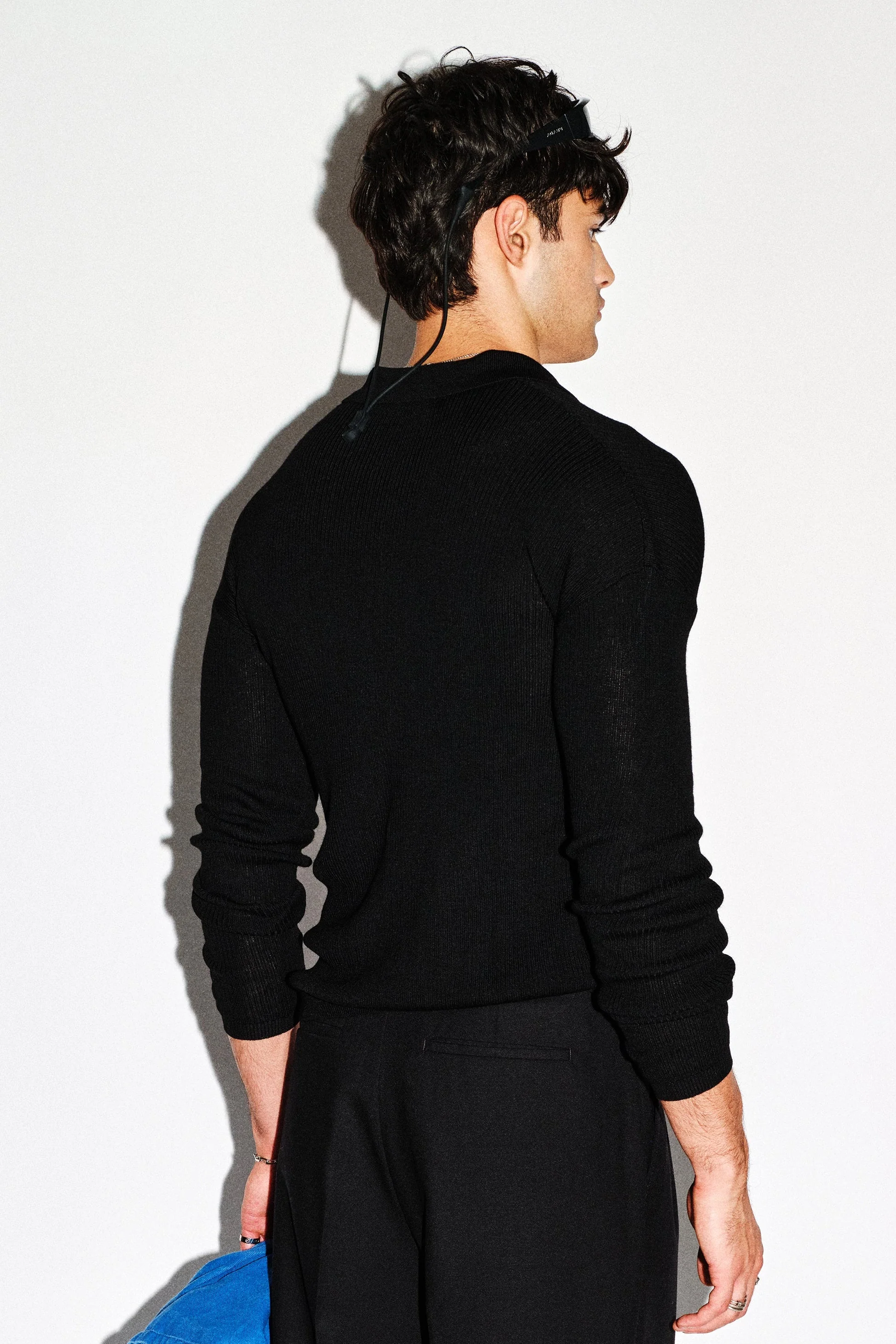 Refined in its collared silhouette yet gritty in its slim, cropped profile. Constructed from a semi-sheer 100% ribbed wool, this baby cardigan can be worn as a statement alone or as a layer over a baby tee for the ultimate blend of prep and grunge.